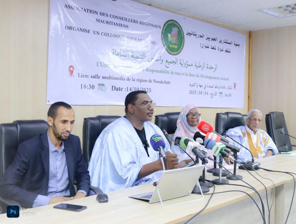 الوحدة الوطنية ركيزة التنمية الشاملة في ندوة حصرية لجمعية المستشارين الجهويين وأساس التنمية الشاملة”، نظمت جمعية المستشارين الجهويين الموريتانيين، مساء الثلاثاء، ندوة علمية حصرية في قاعة الوسائط المتعددة بجهة نواكشوط، حضرها نخبة من المسؤولين الحكوميين والمستشارين الجهويين وممثلي السلطات الإدارية والأمنية، إضافة إلى فعاليات من المجتمع المدني والإعلام الوطني.