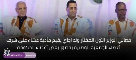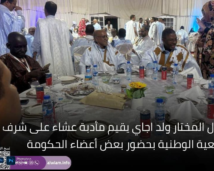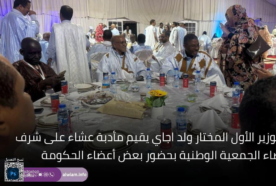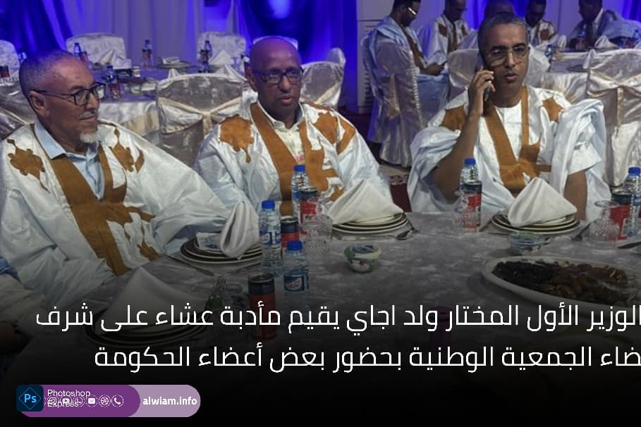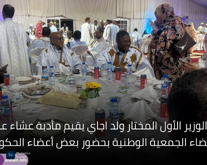 في مشهد سياسي يحمل أكثر من دلالة، احتضن قصر المؤتمرات في نواكشوط مأدبة عشاء أقامها الوزير الأول المختار ولد أجاي على شرف رئيس وأعضاء الجمعية الوطنية، بحضور عدد من أعضاء الحكومة، ورئيس حزب الإنصاف الحاكم، ورئيس اتحاد أرباب العمل الموريتانيين، وشخصيات سياسية واقتصادية بارزة.