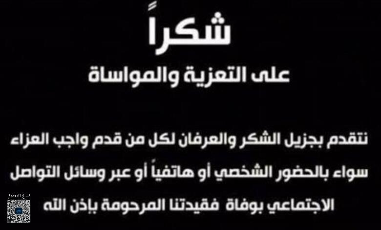 كما نبتهل إليه سبحانه أن يتغمد فقيدتنا بواسع رحمته، ويسكنها فسيح جناته، ويلهم أهلها وذويها الصبر والسلوان.