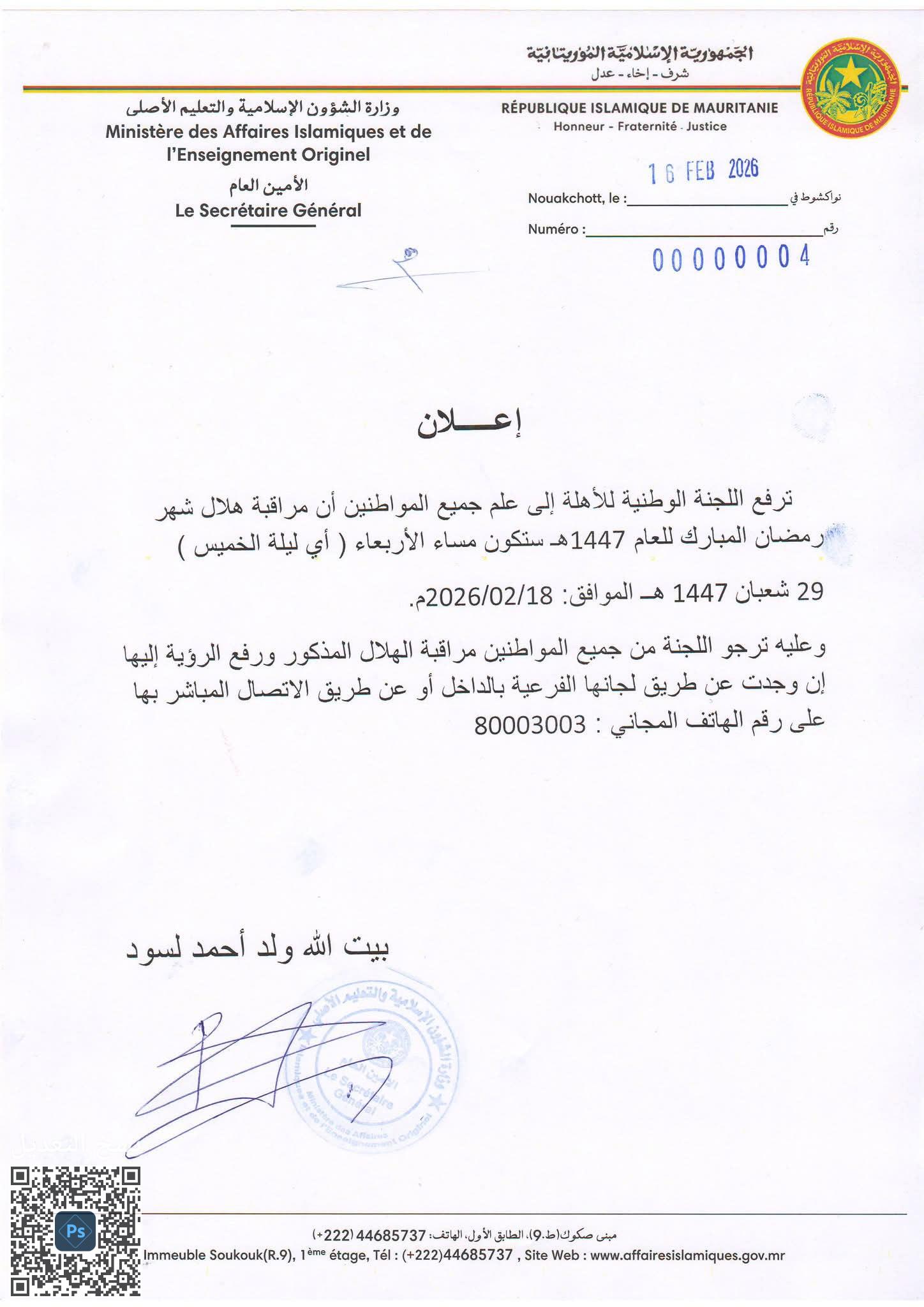 وأكدت أن استقبال البلاغات سيتم عبر لجانها الفرعية المنتشرة في الداخل، أو من خلال الاتصال المباشر على الرقم المجاني: 80003003، مشددة على أهمية التعاون في هذا الجانب لما له من تعلق بإثبات دخول الشهر الكريم وفق الضوابط المعتمدة.