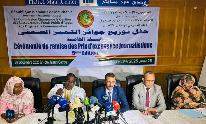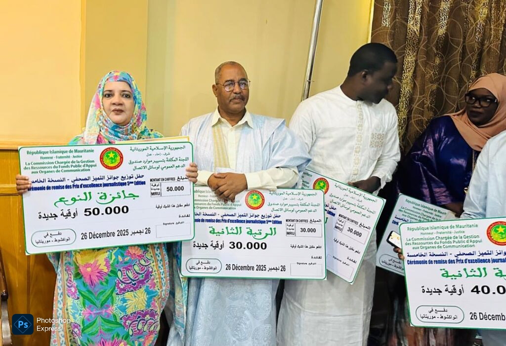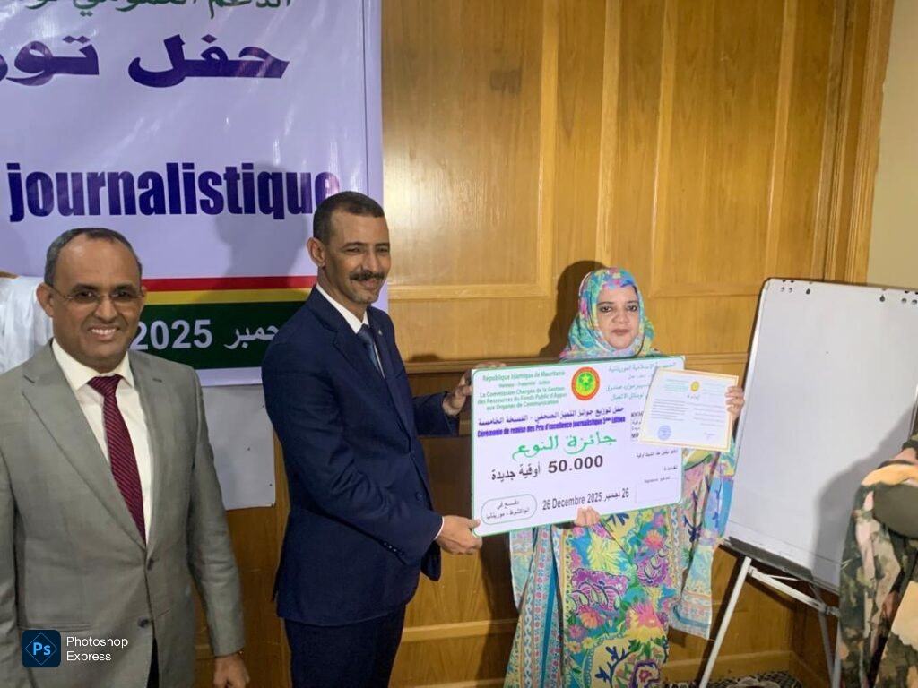 أشرف وزير الثقافة والفنون والاتصال والعلاقات مع البرلمان، السيد الحسين ولد مدو، صباح اليوم الجمعة 26 ديسمبر 2025 بفندق موريسانتر ، على حفل توزيع جوائز التميز الصحفي في نسختها الخامسة، وذلك بفندق موري سانتر في العاصمة نواكشوط.