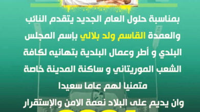 القاسم ولد بلالي يهنئ الشعب الموريتاني وساكنة نواذيبو بحلول العام الجديد